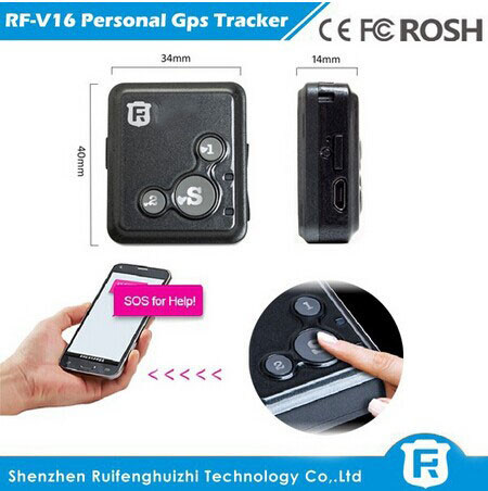 O mini perseguidor pessoal dos gps RF-V16 é ideal para o uso como um dispositivo de segurança pessoal, permitindo o de encontrar rapidamente e exatamente o portador. Fornece a capacidade a mais exata do lugar, mesmo em ambientes danificados. Igualmente é um dispositivo de segurança para as comunicações da emergência capazes remotamente da monitoração. Basicamente, é um telefone móvel diminuto limitado a chamar todos os 2-5 números pre-programados, que lhe faz o ideal para crianças e séniores.